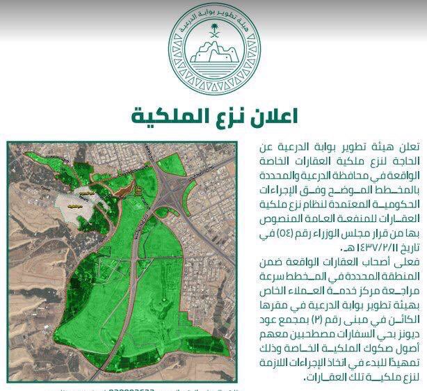 مطير مطير On Twitter إعلان نزع ملكية من هيئة تطوير بوابة الدرعية وذلك لصالح مشروع بوابة الدرعية مشروع سياحي ثقافي حيوي ضخم يقام على مساحة 1 500 000 م٢ إضافة الى أكبر متحف إسلامي