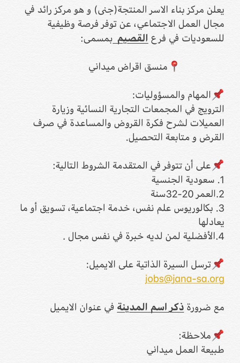 إعـلان مهـم تقديم على وظيـفةمركز جنى لبناء الأسر المنتجة يعلن وظائف إدارية للسعوديات في 4 مناطق Wadhefa Com News Php News Pic Twitter Com E9dronbbyw السعوديه عماله نت